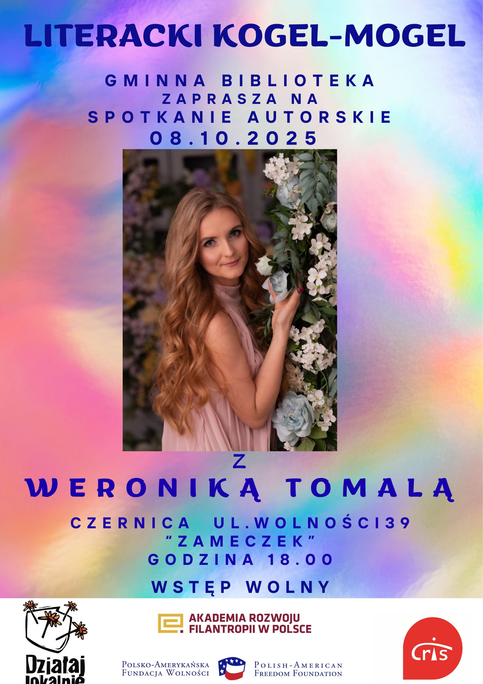 Weronika Tomala – spotkanie autorskie 30 września 2025 Zapraszamy na spotkanie autorskie z Weroniką Tomalą: kiedy: 8 października 2025 r. o godz. 18 gdzie: „Zameczek” – Czernica, ul. Wolności 39 WSTĘP WOLNY